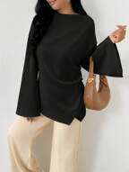 SHEIN MOD Top élégant à col ras-du-cou polyvalent de couleur unie, été