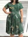 EMERY ROSE Plus Size V-Neck Allover Print Country Casual Long Sleeve Fall Women Clothes Dress