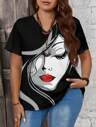 EMERY ROSE Women Plus Size Casual Minimalist V-Neck Short Sleeve Dress, Suitable For Summer,Beach Dress Sundress,Holiday Outfits Boho Suitable For Going Out Chic Dress