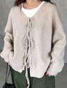 FRIFUL Women's Summer Lightweight Drop Shoulder Sheer Lace-Up Detail Long Sleeve Shirt