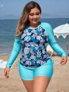 Swim Lushoire Summer Beach Plus Size Tropical Print Rashguard Short Sleeve Tee With Shorts Set