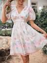 Simplee Knot Straps Shirred Waist Ruffle Hem Schiffy Cami Dress