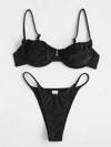 Swim Basics Summer Beach Ruched Bikini Set Push Up Bra & Thong Bottom 2 Piece Bathing Suit