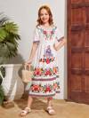 SHEIN Tween Girl Mesh Spliced Dress With Bow Decoration,Holiday,Summer,Travel