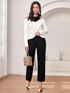 Alicedudu Women's Contrast Color Collar Design Sweater, Autumn/Winter