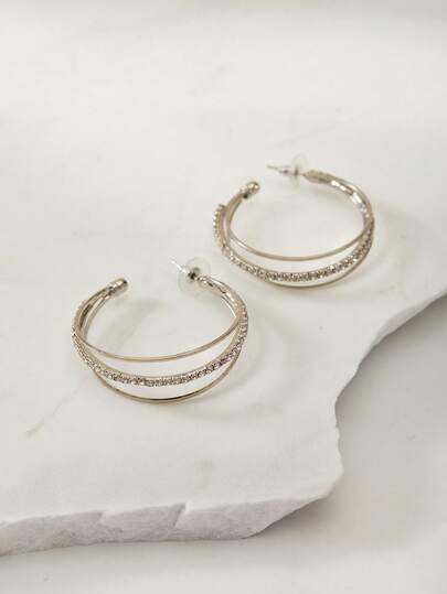 Clariva 1 Pair (2pcs) Exaggerated Layered Hoop Earrings For Women Gifts - Silver - View 1