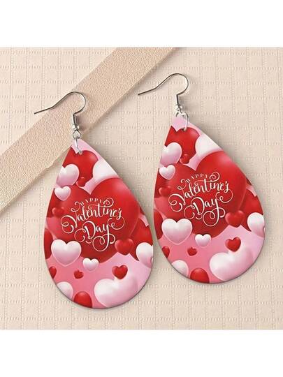 1 Pair Women's Heart Shaped Faux Leather Teardrop Earrings - Lightweight Double-Sided, 2 Styles Available, Beautiful Valentine's Day Gift - Multicolor - View 12