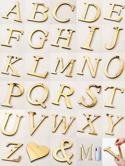 20cm Gold/Silver 3D Acrylic Mirror Finish Alphabet Wall Stickers, 26 English Letters, DIY Self-Adhesive Removable Modern Creative Home Decor, Suitable For Living Room, Bedroom, Study, Dining Room, Rental Space, Bathroom - Multicolor - View 61