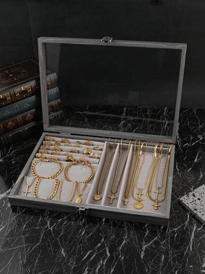 Hipoem 6/10/12/16/20/33 Pieces Stylish Stainless Steel Men's Large Jewellery Set, Including Cross Polaris Geometric Pendant Necklace Bracelet Oil Pressed Hollowed Out Open End Ring, Suitable For Men And Women Daily Matching Holiday Jewellery Dating Engagement Gift Jewellery Style Random Size Random (Jewellery Box Not Included) - Gold - View 9