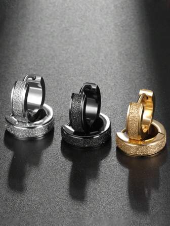 2 זוגות עגילי נירוסטה מבריקים ומט, תכשיטים בסגנון רחוב מינימליסטי מתאים לגברים ולנשים