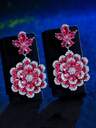 סט אחד לנשים שרשרת ועגילים תלויים בצבע ורוד ולבן עם זירקוניה גדולה, סט תכשיטים אלגנטי מצופה כסף עם זירקוניה לכלות, חתונה, מסיבת אירוסין, שושבינות, חברות, אמהות - מתנה