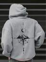סווטשירט קפוצ'ון שחור עם דוגמת מצפן ואותיות לבני נוער. מתאים לעונות האביב והסתיו.