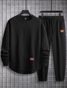 Manfinity Homme חולצת טי-שירט ארוכת שרוולים עם צווארון עגול וגימור צבעוני לגברים, לסתיו