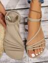 סנדלי קיץ חדשים לנשים עם רצועות, אלגנטי ונוח בגודל פלוס כפכפי אצבע מרובעים, זמינים בשחור, לבן, בז', חאקי, סגול, זהב