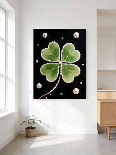 New Pearl Painting Four-Leaf Clover Theme Frameless DIY Handmade Sticky Diamond Creative Diamond Painting Kit, Suitable For Bedroom Decoration, Living Room Hanging Paintings, Room Decoration, Artwork, Birthday Gifts For Friends, Christmas, New Year, Valentine's Day, Holiday Gifts Full Of Novelty - Multicolor - View 1