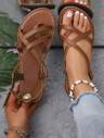 סנדלים שטוחים ארוגים לנשים בצבעי שחור, חום, משמש וקפה, צבע אחיד עם טבעת בוהן, נעלי בית מונעות החלקה חיצוניות ופנימיות