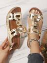 כפכפי סנדלים שטוחים אופנה חדשה לנשים, אבזם בעל 3 רצועות בצבע אחיד בוהן פתוחה ללא החלקה חיצוני/פנימי, זמין בצבעים חום, שחור, לבן, בז'