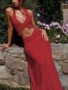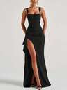 שמלת שסע אלגנטית וסקסית בצבע אחיד לנשים, מתאימה למסיבה, חג, חופשה, צבע חום