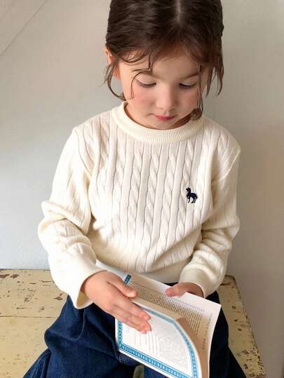 DAZY Young Girl Casual Unicorn Embroidery Fishnet Knitted Sweater, Autumn/Winter Fall Clothes - Beige - View 1