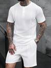 Manfinity CasualCool סט מכנסיים קצרים בצבע אחיד לגברים, צווארון עגול, בצבע קז'ואל, עם שרוולים קצרים בצבע אחיד ומכנסיים קצרים עם שרוך, בגדי קיץ לגברים, מתאים לאביב ולקיץ. מתאים ללבוש יומיומי, יציאה, חופשה, נסיעות, מסיבה, מפגש עם חברים. ניתן לתת כמתנה למשפחה, חברים, בן זוג, בעל, אבא. ביגוד קז'ואל לגברים, סט שני חלקים לגברים, סט קצר לגברים, סטים לגברים בקיץ, תלבושות נעימות 3# רבי מכר