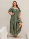 Cravure שמלת מקסי אלגנטית עם צווארון V עמוק, טלאים, תחרה, שרוולים ארוכים ושסע גבוה לנשים במידות גדולות, מתאימה לסיום לימודים, חגים, יום ולנטיין, חג המולד, פסטיבלי מוזיקה, יום האם, ליל כל הקדושים, חג ההודיה, פסחא, יום לאומי, נשפים, דייטים, מסיבות, חתונות, טיולים בחוץ וכו'.