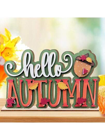 1/220 Set Decorazione da tavolo in legno piatta 2D, Ciao Autunno, Decorazione rustica da scrivania con pigne, foglie d'autunno e raccolto, per fattoria, festa a tema autunnale del Ringraziamento, decorazione da cucina - Multicolore - Visualizzare 1