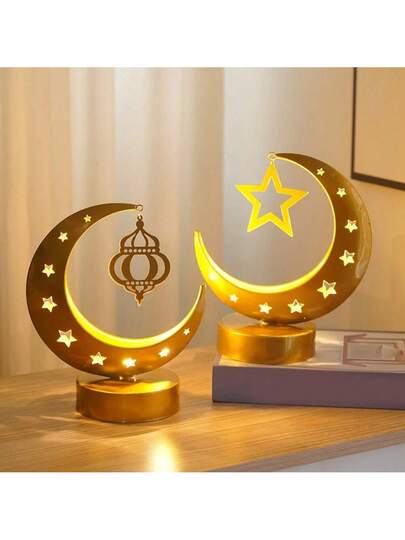 1 Pezzo Decorazioni Led Mubarak Moon Lampada Da Tavolo Per Ornamenti Da Tavolo, Luce Notturna Led Per Decorazione Casa/festa Islamica - Giallo - Visualizzare 10