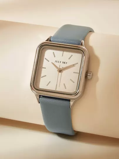 1 pezzo Orologio al quarzo semplice ed elegante in pelle PU blu JULYSKY, adatto per l uso quotidiano e come regalo per le vacanze - Blu - Visualizzare 1