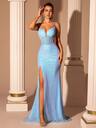 ADYCE Abito da sera lungo con vita alta, senza schienale, con ricamo e perline fatto a mano, adatto per balli, feste di compleanno, cene formali, appuntamenti, cerimonie di fine anno scolastico, matrimoni, gala, riunioni di famiglia e altre occasioni