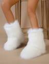 Stivali da neve soffici da donna, stivali da neve di media altezza foderati in pelliccia sintetica spessa e calda, bianchi