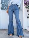 Pantaloni a zampa in denim elasticizzato slim-fit a vestibilità aderente monopetto da donna