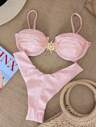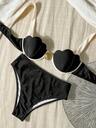 Bikinx Costume da bagno elegante da donna per vacanze estive, con coppe a conchiglia, bordi a contrasto e anello in acciaio