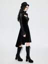 Breakform Abito da donna in stile gotico con collo rotondo in rete floccata, allacciatura, orlo asimmetrico e maniche a campana aderente