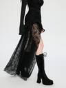 Breakform Crop top da donna in stile gotico, sexy, in rete trasparente con inserti in velluto, scollo con laccetti, maniche a campana con bordo in pizzo, aderente