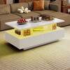 Tavolino moderno BALCONERA bianco (900550410mm) – Finitura lucida UV, 4 cassetti e striscia LED RGB a 7 colori, staccabile