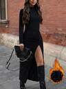 Abito lungo elegante e casual in stile europeo e americano, di colore unito, senza maniche, adatto per il pendolarismo, nuovo stile vacanziero per la primavera/autunno, versatile, in maglia elasticizzata con cintura in vita, vestibilità slim, fodera comoda