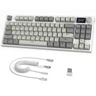 Tastiera da gioco senza fili FREEWOLF M75 con sensazione meccanica a membrana, manopola e display OLED, Bluetooth/2.4Ghz, retroilluminazione arcobaleno a gradiente, keycap in PBT, batteria da 2000mAh, anti-ghosting