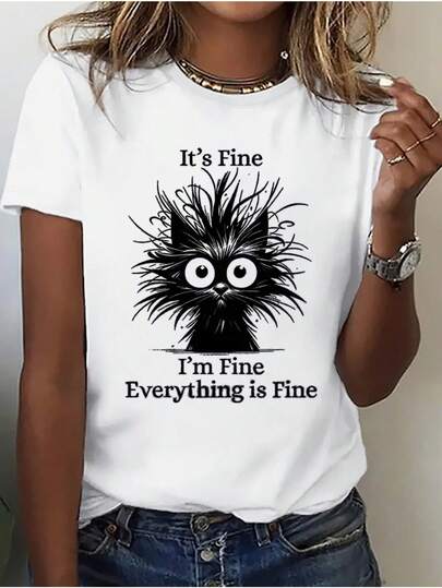 Fantastic "it Doesn'T Matter i'M Fine everything is Fine" Ladies' Cat T-Shirt Versatile High-Quality Leisure Sports Women'S Wear - Bianco - Visualizzare 1