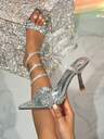 Sandali con tacco alto e platform, decorazione in paillettes nere, adatti per uso esterno, sandali alla moda estivi per donne