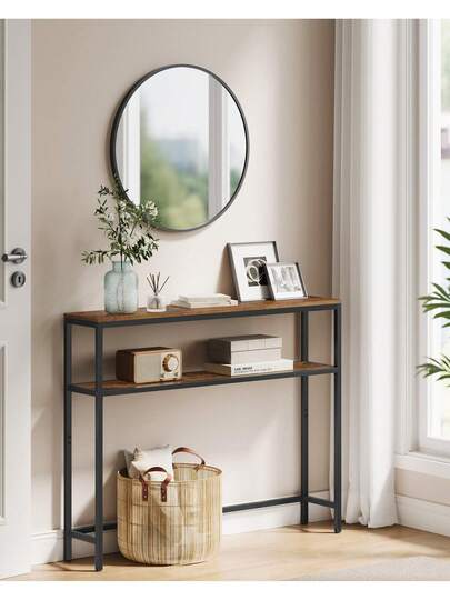 Tavolo Consolle, 20 x 100 x 80 cm, Tavolino Stretto, Tavolo da Ingresso Moderno con 2 Ripiani, Per Soggiorno, Camera da Letto, Marrone Vintage e Nero Inchiostro - colore granata - Visualizzare 1