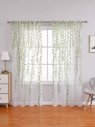 Tenda sottile singolo pannello con motivo foglia - Multicolore - Visualizzare 2