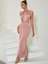 Abito scivolato senza maniche monocolore con scollo sulla schiena, con design a coda di pesce e taglio slim per donne