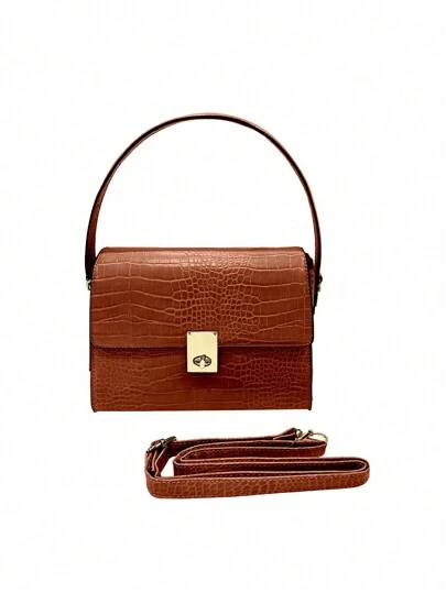 Borsa MILANO: Casual, alla moda, elegante, unica, alla moda, lussuosa borsa a mano in pelle PU con stampa coccodrillo, tracolla regolabile, adatta per vacanze, business, estate, week-end, regalo - Giallo terroso - Visualizzare 1
