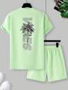 Manfinity Chillmode Set di canotta e pantaloncini da uomo casual per vacanze, con stampa gradiente di palme, outfit da spiaggia per vacanze, comodo