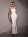 Modphy Nuovo abito da sera lungo fasciante con spacco alto, decorato con diamanti di lusso, senza spalline, elegante abito da cerimonia per feste formali e vacanze