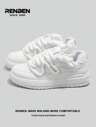 1 Paio di Scarpe Comode con Suola Spessa per Donne Renben, Tomaia in Tessuto Bianco con Lacci, Suola Grigia, alla Moda e Versatili, Leggere, Aumentano l'Altezza, scarpe sportive Casual da Esterno Bassa, Adatte per Gonne, Pantaloni, Pendolarismo, Popolari per Scarpe da Donna 2025