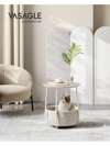 Tavolino, Tavolino Rotondo con Cestino in Tessuto, Spazioso, per Soggiorno Camera da Letto, Comodino, Stile Moderno, Bianco Opaco e Marrone Cammello