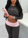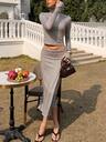 Completo casual da donna con top a maniche lunghe e pantaloni a zampa, stile da strada per uso quotidiano, primavera/estate