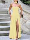 Abito lungo elegante e sexy da donna con spacco, modesto, adatto per primavera/estate, festa, eventi, vacanze, colore bordeaux