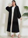 Set da donna composto da cardigan comodo e casual a tinta unita con apertura frontale e abito lungo smanicato, abaya con cintura - senza hijab, spedizione rapida